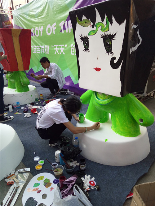 以“年輕、健康、活力、全新”為主題,信陽天潤廣場推出5周年店慶吉祥公仔“天天”,并在店慶當(dāng)天舉辦了吉祥公仔藝術(shù)涂鴉展活動。