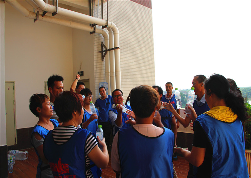 您看,他們在挑戰(zhàn)NO.1。我們不斷挑戰(zhàn)自我,在最短的時(shí)間里完成不可能的任務(wù)。傳遞出的不是水瓶,是彼此的信任,彼此的真情。我們收獲了勝利的喜悅,鍛煉了堅(jiān)韌不拔的精神品質(zhì),體會(huì)到不拋棄、不放棄,堅(jiān)持便能完成目標(biāo)。